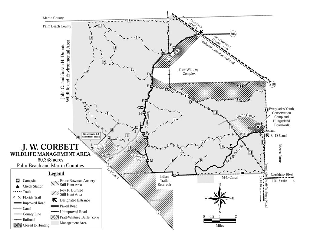 *J. W. Corbett Area is the northern starting point Seminole Pratt Whitney, north to J.W. Corbett Area Turn west onto 94th Road West Turn south onto Banyan Blvd. Turn west on Orange Blvd. Turn south on 170th End M Canal