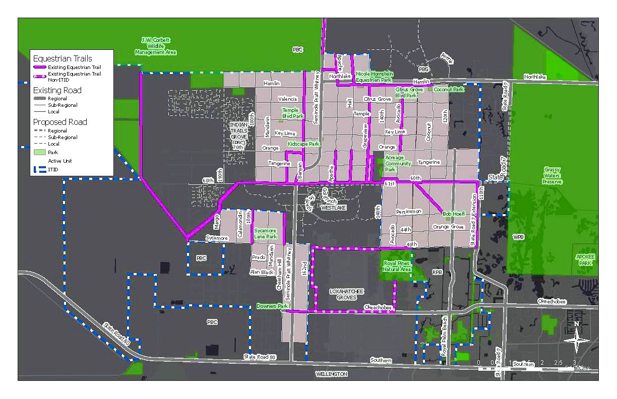 From Hamlin Blvd. & Grapeview intersection, travel south to Tangerine Blvd. Enter Palm Beach County Acreage Natural Pines Area (the western natural area alongside Acreage Community Park). STAY ON THE DESIGNATED TRAILS WITHIN THE ACREAGE NATURAL PINES AREA! Exit onto 140th, and travel south to 61st Street North. Travel east along 61st to Avocado. Travel south along Avocado, crossing M Canal. Turn east onto 60th and continue to 130th (east side).